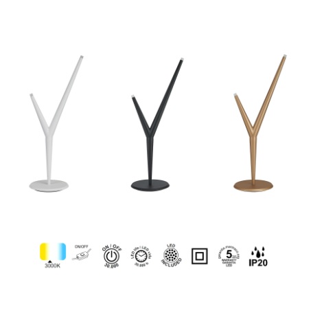 Candeeiro de mesa em alumínio, ferro e acrílico produzido na cor dourada.