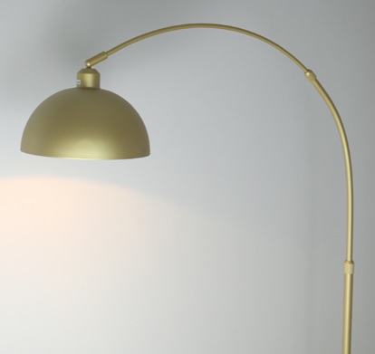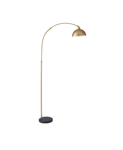 Candeeiro Pé Alto dourado com base em mármore preto. Ideal tanto para espaços de estudo e trabalho como ponto de luz auxiliar em salas de estar.
